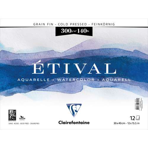 Le papier Etival Clairefontaine est conçu pour la pratique de l’aquarelle et toute autre technique humide. Il bénéficie d’une surface subtile offrant une base de travail facile et, pour cela, est apprécié des aquarellistes amateurs et débutants.