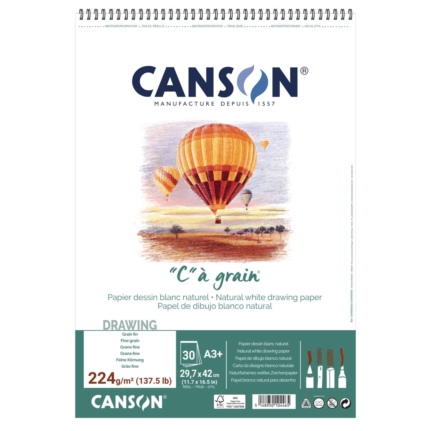 Le papier “C” à grain Canson est idéal pour le dessin, grâce à son grain fin, ni trop lisse, ni trop présent, permettant à la fois des effets de relief et un résultat tout en finesse.