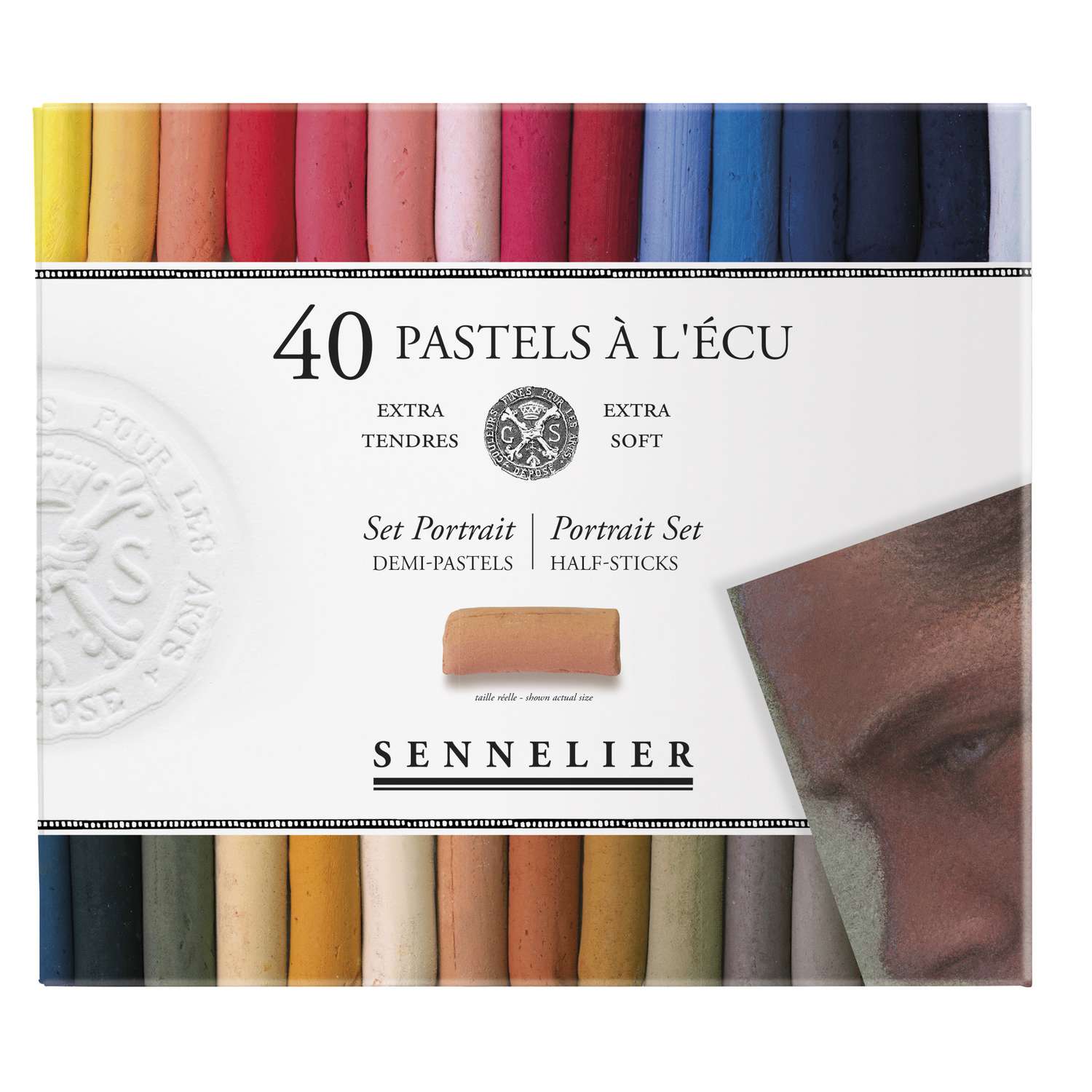 Ce coffret de 40 demi-pastels à l'Écu Sennelier présente une sélection de nuances portrait.