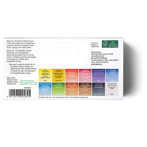 L’aquarelle Cotman offre une bonne transparence, une excellente intensité de couleur et de belles propriétés de maniabilité. Ce coffret Field Set Cotman compacte exclusive est léger et tient facilement dans une poche de veste, tout en contenant tout le nécessaire pour peindre en extérieur. Il est fabriqué en plastique bleu de haute qualité