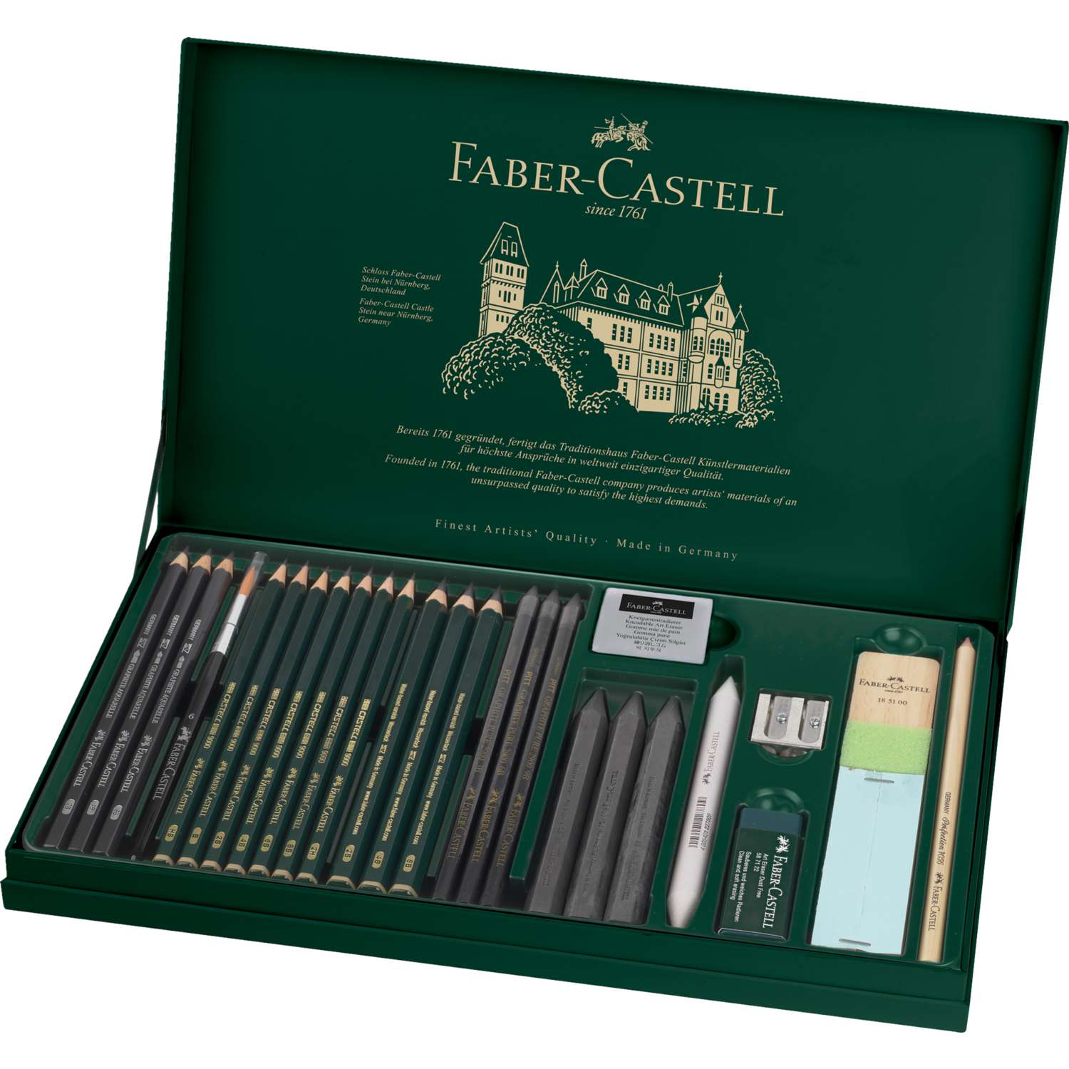 Fondée en 1761, Faber-Castell est une entreprise familiale allemande créatrice, aux origines, de crayons. Basée à Stein, près de Nuremberg, Faber-Castell est aujourd’hui présente dans le monde entier. Elle propose une gamme élargie d’outils d’écriture et de création avec des méthodes de production durables.