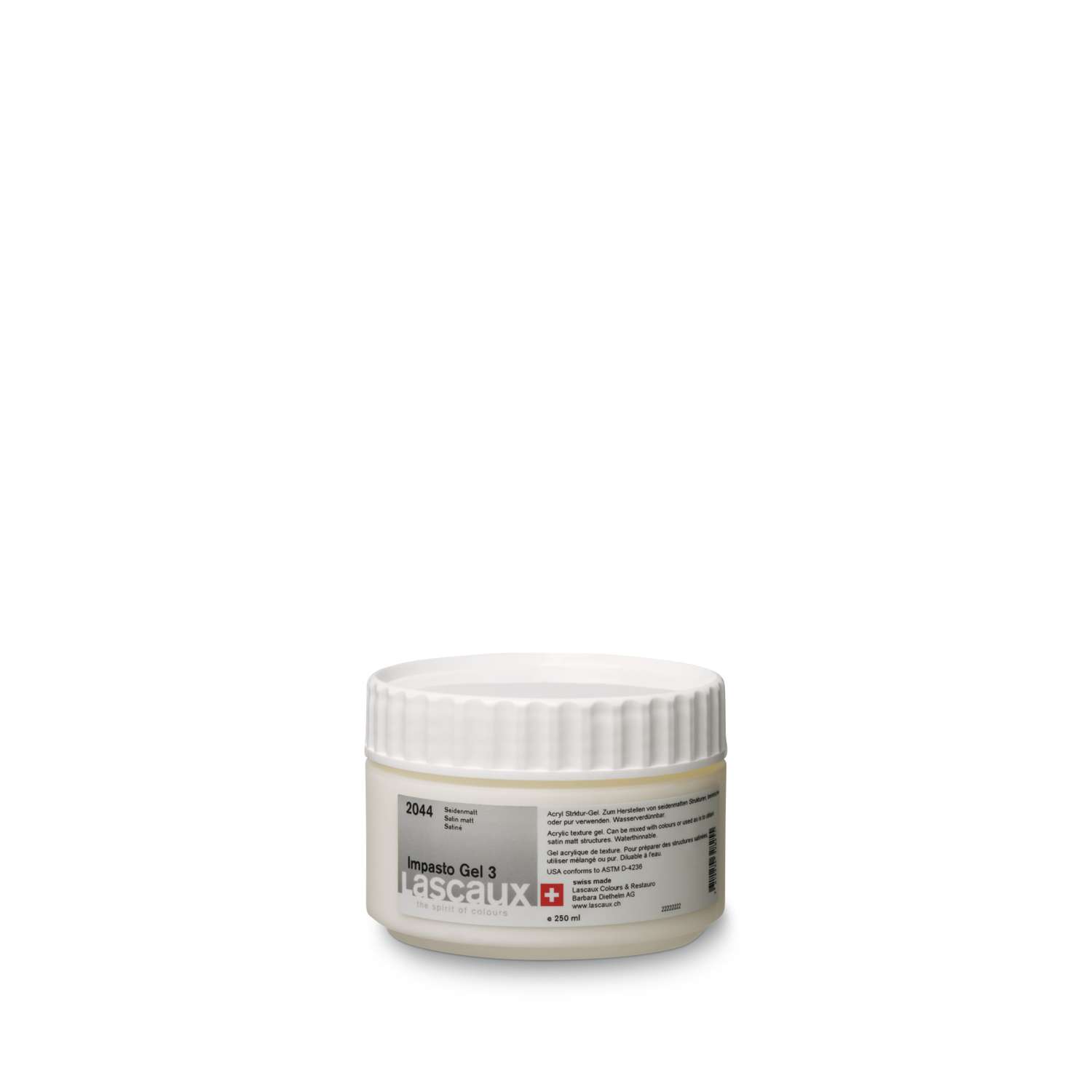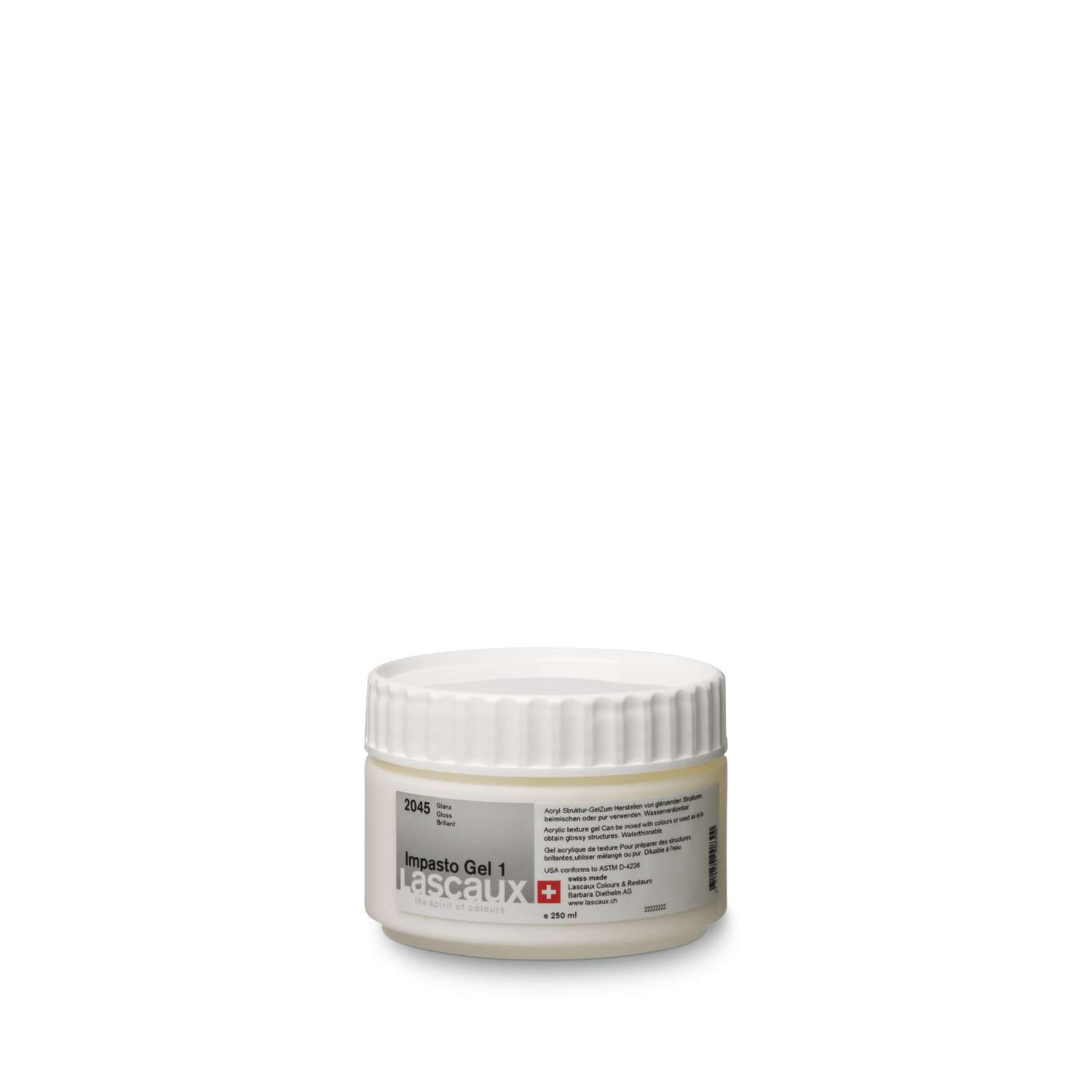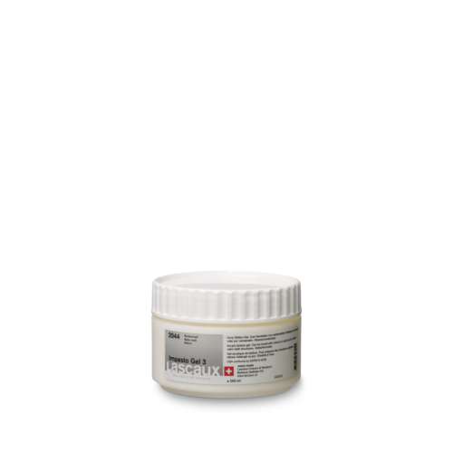 Gel de texture Lascaux : médium acrylique épaississant pour empâtements, collages et effets matière, finition brillante, mate ou satinée.