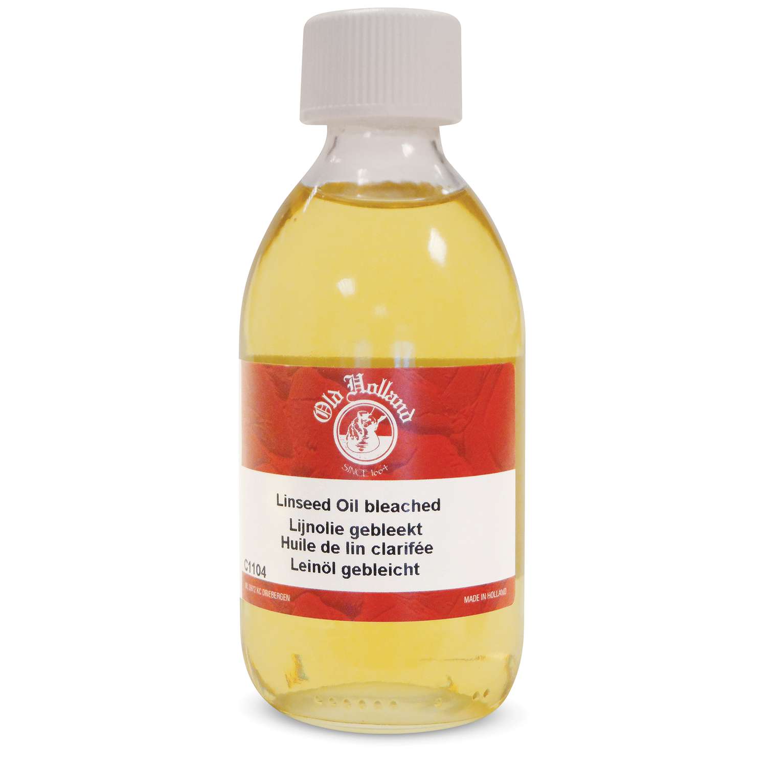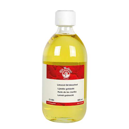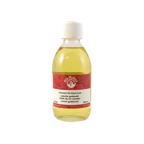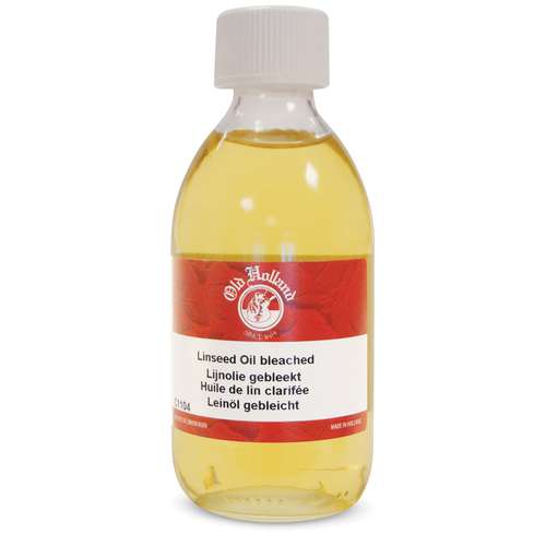 Huile de lin pressée à froid et ensuite blanchie. Augmente la fluidité et fait disparaître le coup de pinceau. Renforce la brillance et ralentit le temps de séchage. Se dilue dans l’huile de térébenthine et la térébenthine.