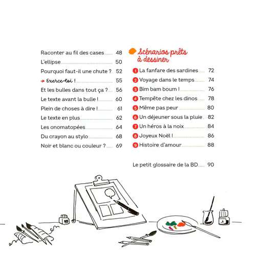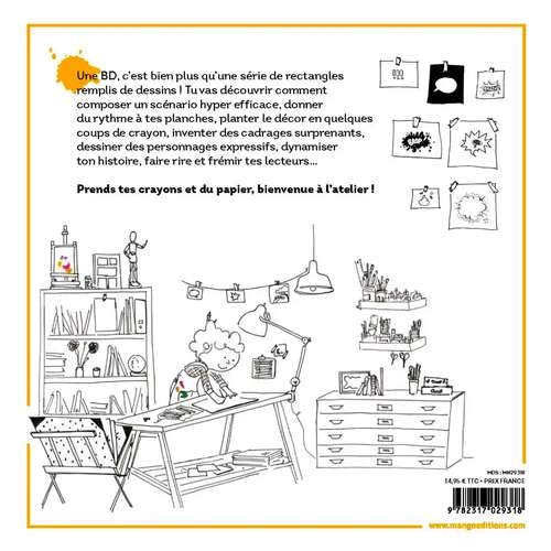 Une BD, c'est bien plus qu'une série de rectangles remplis de dessins ! Tu vas découvrir comment composer un scénario hyper efficace, donner du rythme à tes planches, planter le décor en quelques coups de crayon, inventer des cadrages surprenants, dynamiser ton histoire, dessiner des personnages expressifs, et captiver tes lecteurs en les faisant rire et frémir... Prends tes crayons et du papier, bienvenue à l'atelier !