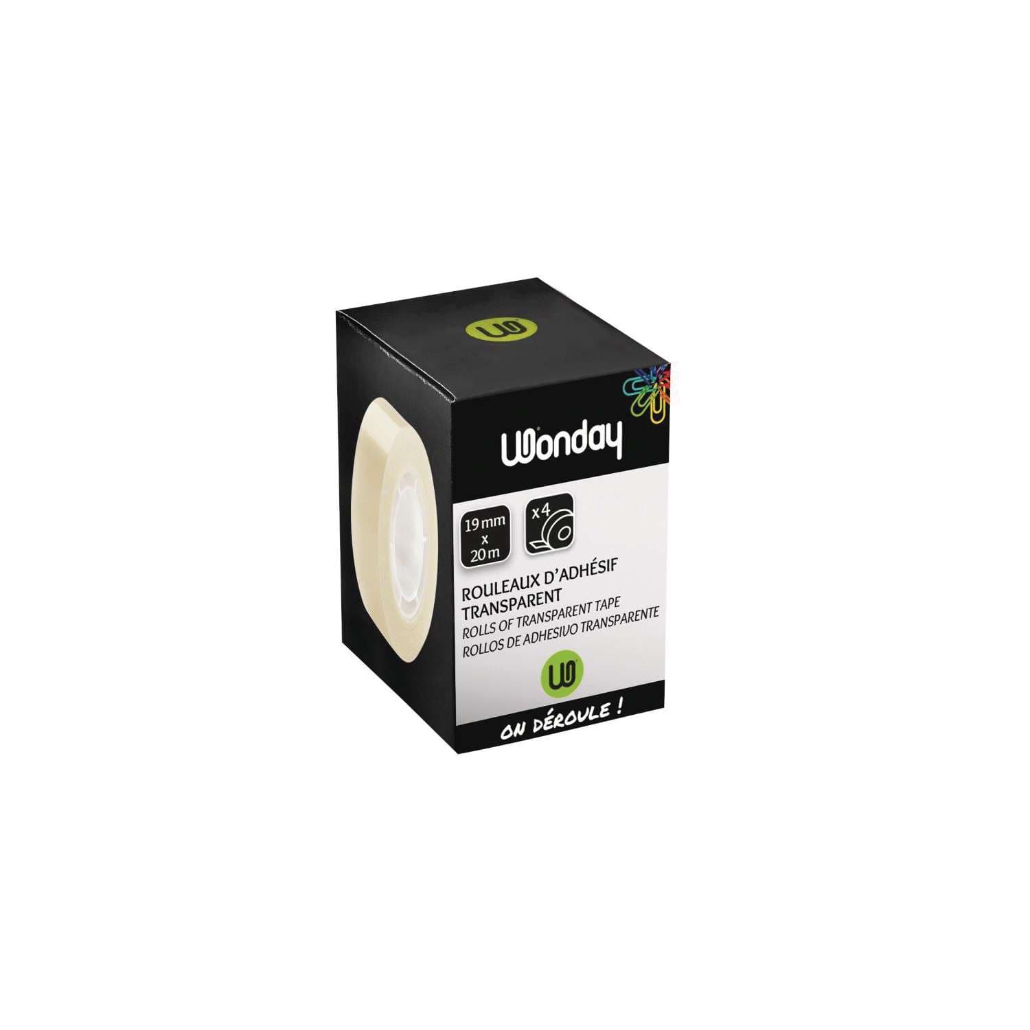 Lot de 4 rouleaux d'adhésif transparent Wonday, 19 mm x 20 m
