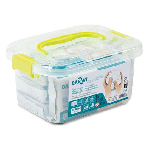 La mallette plastique Darwi Classic est une solution complète et pratique conçue pour les écoles, ateliers créatifs et centres éducatifs. Il contient 4 pains de pâte autodurcissante de 1 kg, prêts à l’emploi pour toutes sortes d’activités de modelage créatif.