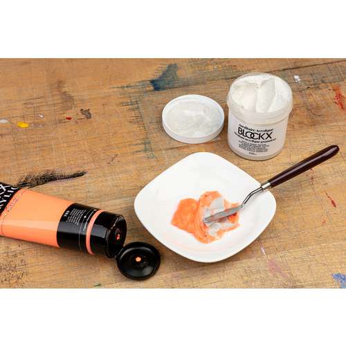 Les auxiliaires Blockx sont exempts de solvants et n'altèrent pas la qualité ni la durabilité de vos couleurs. Les pots de 250 ml sont dotés d'une ouverture large, pratique, et idéale pour y plonger vos pinceaux et outils. Ils sont aussi réutilisables à volonté.
