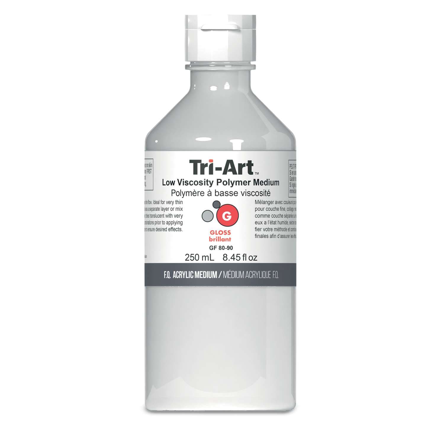 Découvrez le médium polymère Tri-Art dans sa version basse viscosité. Il possède une consistance plus fluide, similaire à l'eau.