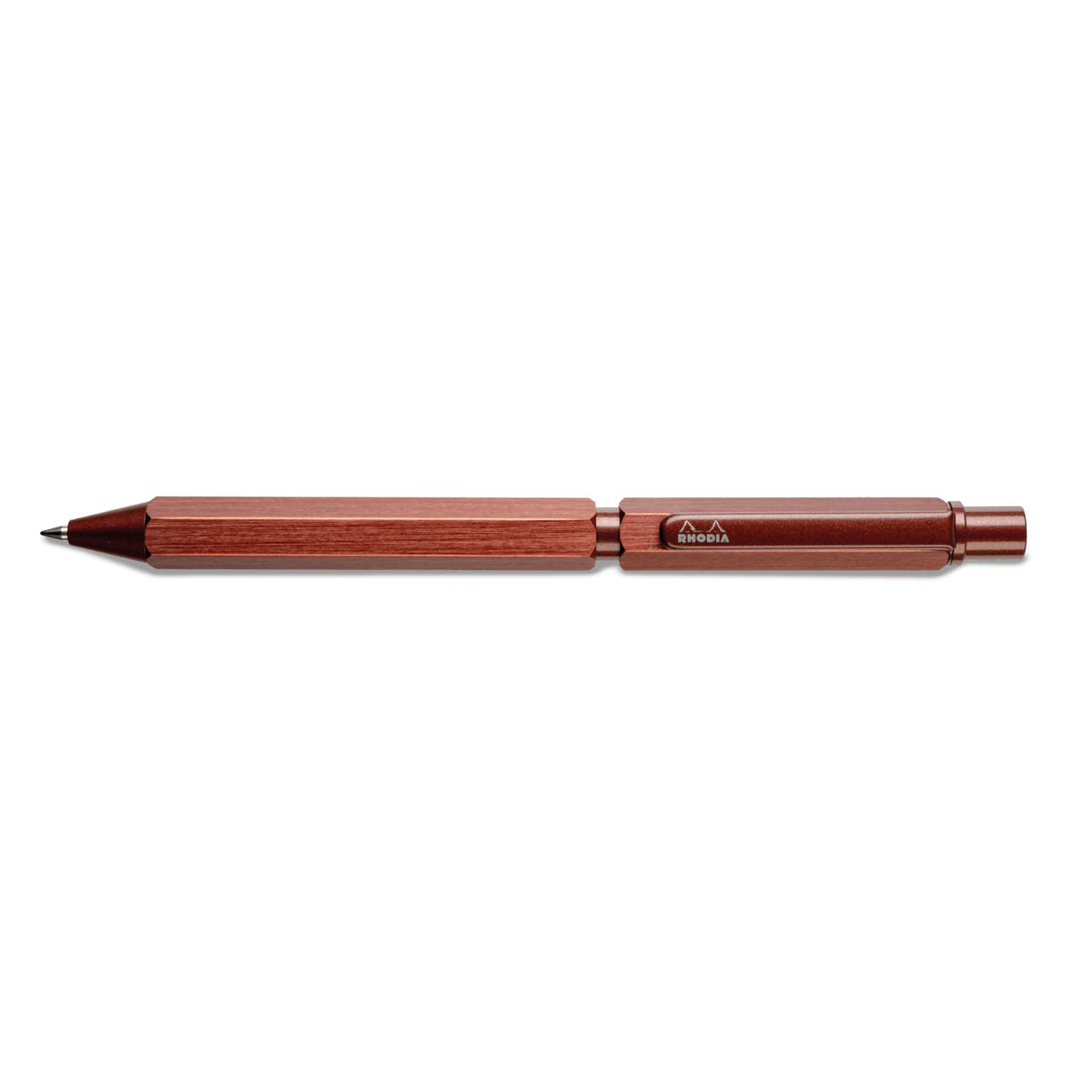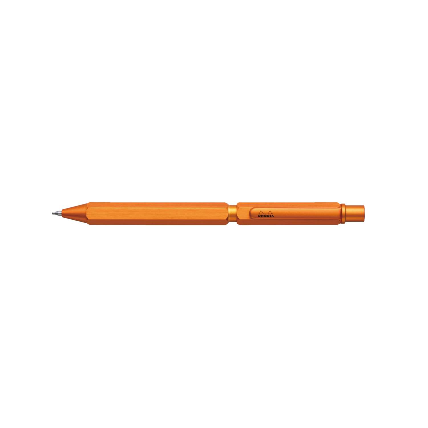 Son corps en aluminium mat lui confère une apparence haut de gamme et il est disponible en plusieurs couleurs, dont le célèbre orange Rhodia®. Le grip en caoutchouc offre une prise en main confortable et antidérapante, pour une écriture agréable et précise.