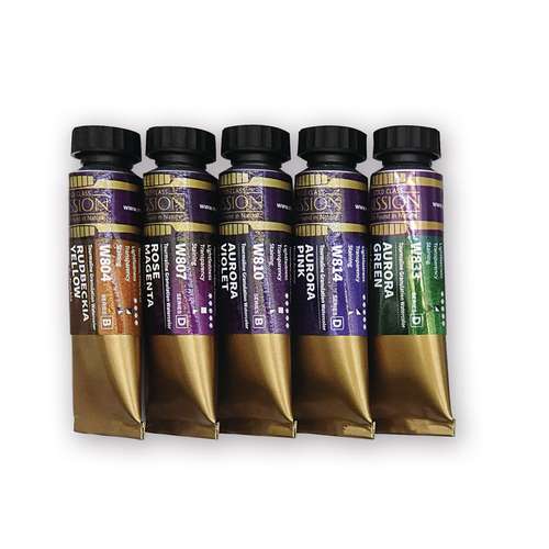 Les peintures aquarelles granulante Mission Gold offrent des couleurs granuleuses uniques composées de deux teintes contrastées, créant des effets visuels impossibles à obtenir par un simple mélange. Ces nuances à double tonalité révèlent toute leur richesse lors des lavis et dégradés, notamment pour peindre des paysages, marines ou scènes urbaines, et encore davantage sur un papier légèrement grainé.