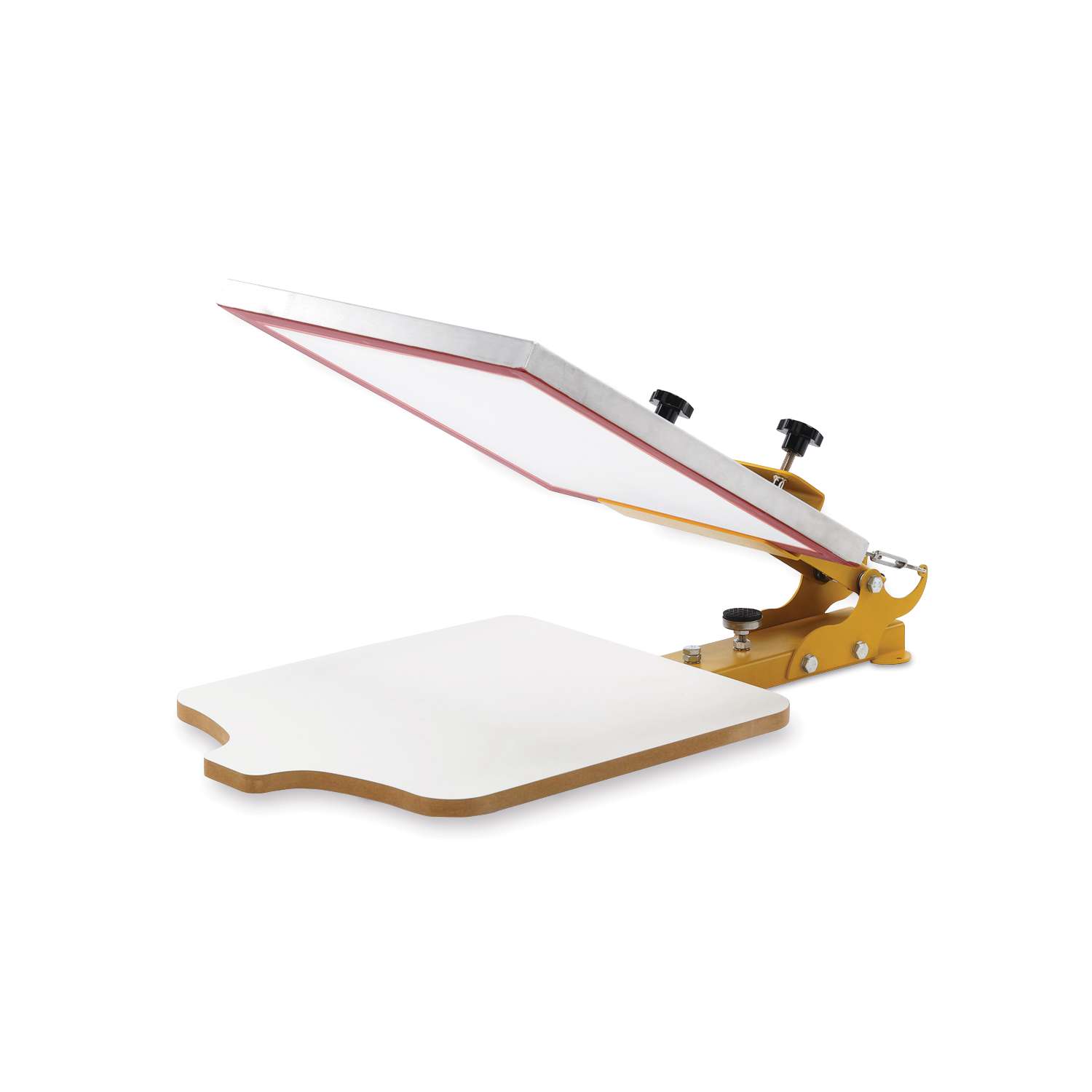 La Machine d'impression sérigraphique HDT150 permet une initiation parfaite dans monde de la sérigraphie. La Machine HDT150 est compacte, prend peu de place, s´utilise même dans les petites pièces, propose de nombreuses fonctions et garantit un travail propre et précis. Parfait pour les impressions sur T-shirts, les sacs ou les affiches jusqu`au format A3+. La maschine en métal coupée au laser est de grande qualité et durable.