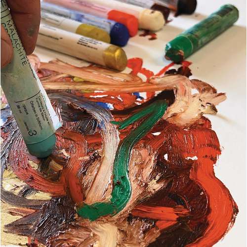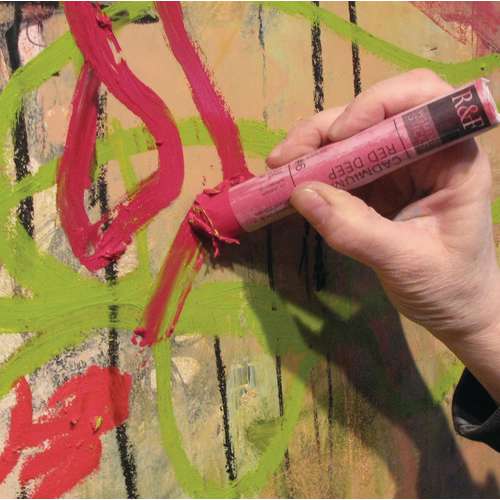 Cette huile solide extra-fine de la marque R&F se présente sous la forme de bâtonnets tendres, à la consistance similaire à celle d'un rouge à lèvres. Elle permet au peintre de dessiner ou de peindre directement sur une surface sans pinceaux, palettes, tubes de peinture ni solvants.