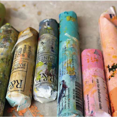 Ces bâtonnets R&F permettent au peintre de travailler de différentes façons possibles. Ils peuvent être utilisés dilués avec de l'essence de térébenthine ou minérale, travaillés avec des médiums (huiles, gels de résine, médiums alkydes) ou mélangés à des peintures en tubes. Enfin, les Pigment Sticks peuvent bien sûr être utilisés purs pour passer sur une peinture sèche et manipulés au couteau comme au pinceau lorsque la consistance devient suffisamment onctueuse. Cette méthode peut aussi être utilisée pour mélanger les couleurs sur la palette ou dans la peinture.