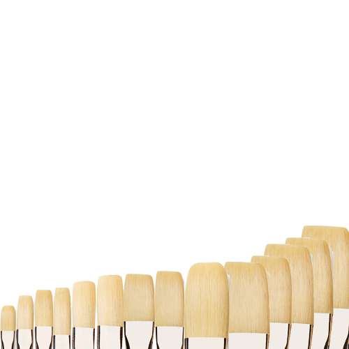 Brosses D’Artigné pointe plate courte - Pour les petites surfaces, les touches plus visibles, les jus et les reprises ! Fibres plus nerveuses que les soies non-cambrées. Gamme idéale pour l’huile et l’acrylique.