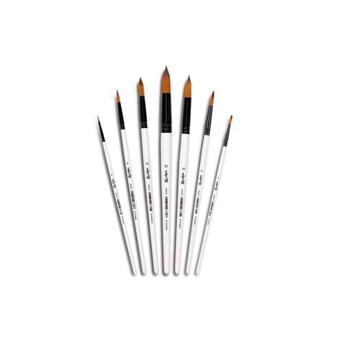 Pinceaux pointe ronde Darwi for You : poils synthétiques souples, pour peinture acrylique. Pointe ronde pour détails et finitions. Manche laqué, facile à nettoyer.