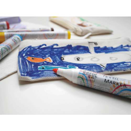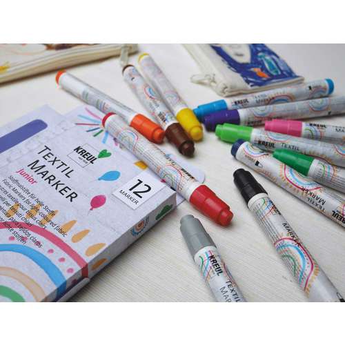 Ce set de 18 feutres Javana Texi Max Sunny contient un étui de 18 feutres de couleurs à la pointe très solide de 2 à 4mm de large. Repassage pour fixer les couleurs. Résiste au lavage en machine jusqu’à 60°C.