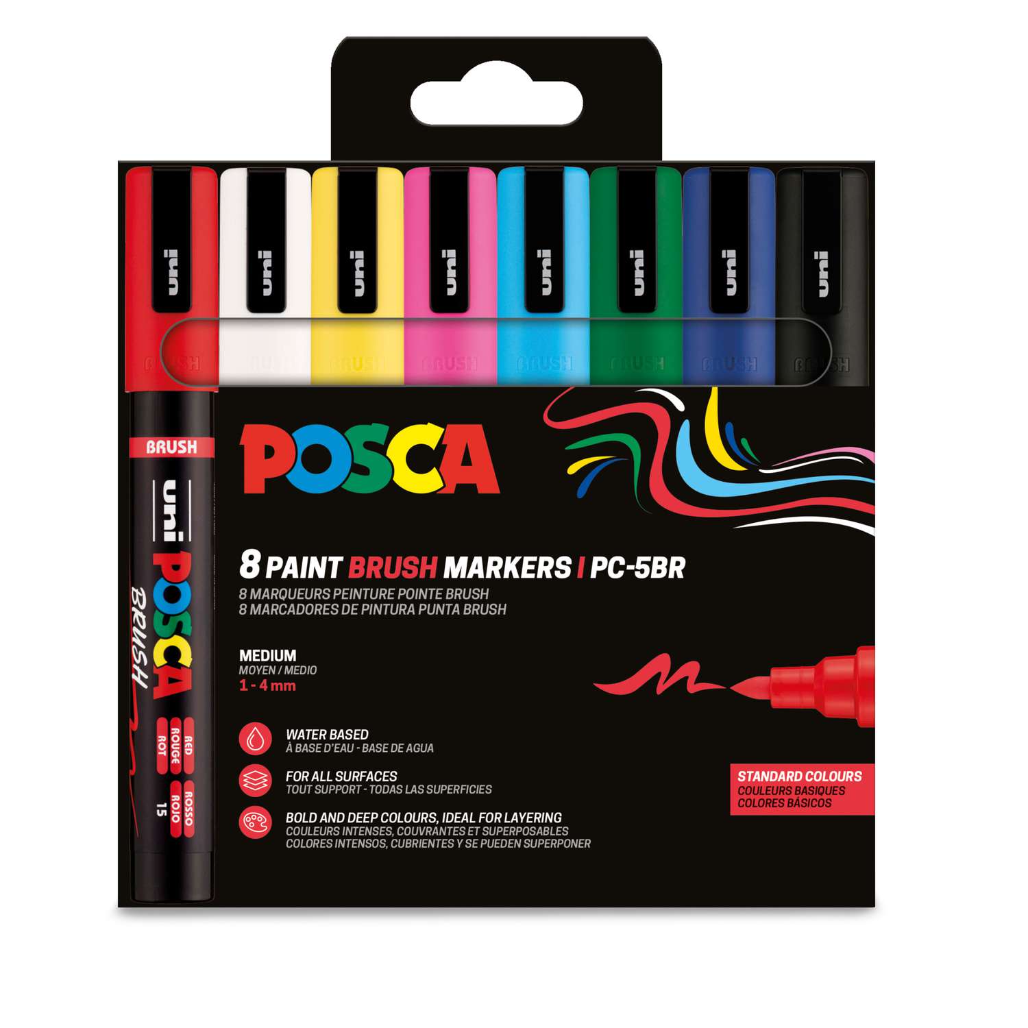 Les MARQUEURS POSCA sont des marqueurs à base d’eau et d’encre à pigmentation. Totalement inodore. L'encre résiste à l’eau et à la lumière. Sans alcool ni solvant, elle ne traverse pas le papier. Parfaite étanchéité grâce au système à valve et au mécanisme à piston. Les marqueurs Posca sont fabriqués à partir de matériaux recyclés et ils ont des couleurs intenses, opaques, brillantes, superposables, miscibles et aquarellables. Elles s’effacent sur les vitres (à l’aide d’un chiffon humide imbibé d’eau chaude et de produit nettoyant spécial vitres), mais sont indélébiles sur les surfaces poreuses.