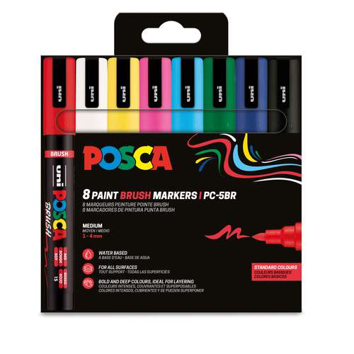 Ce coffret de marqueurs Posca PC-5BR pointe pinceau contient :