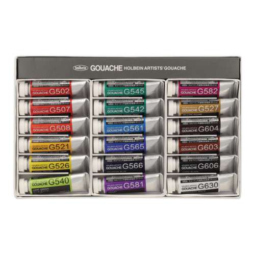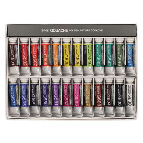 Les couleurs de la gouache professionnelle Holbein marque japonaise renommée nommée d’après Hans Holbein le Jeune (1497–1543), sont opaques, lumineuses et intensément saturées. Elles sèchent de manière uniforme avec une finition veloutée mate.