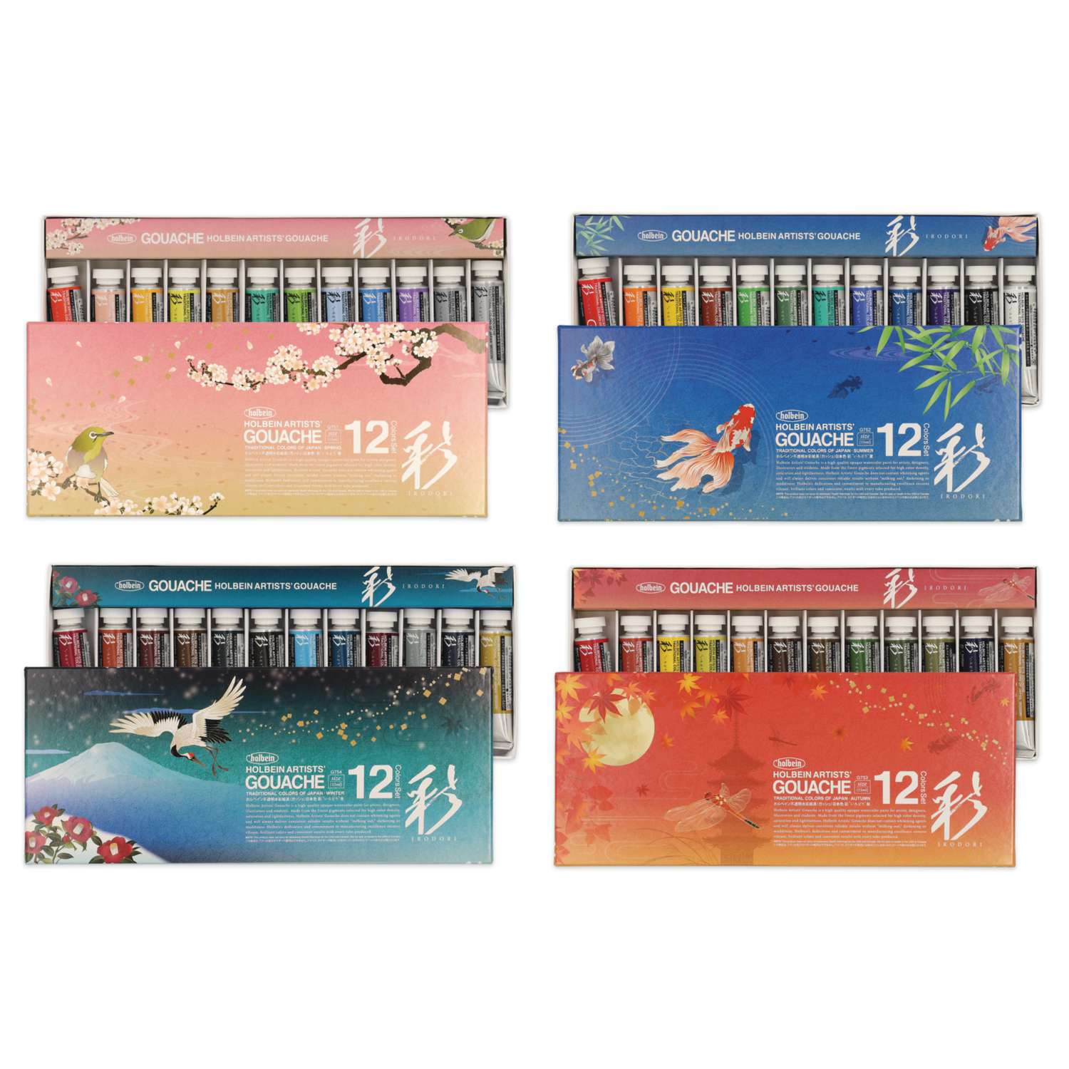 Plongez dans l’élégance des traditions japonaises avec la Gouache Artiste Holbein, une collection raffinée de 12 couleurs inspirées des saisons. Ces teintes, issues des plus célèbres palettes historiques du Japon, reflètent le rythme de la nature et ses nuances délicates. Chaque set se compose de 12 tubes de 15 ml, soigneusement sélectionnés pour incarner l’ambiance unique de chaque saison.