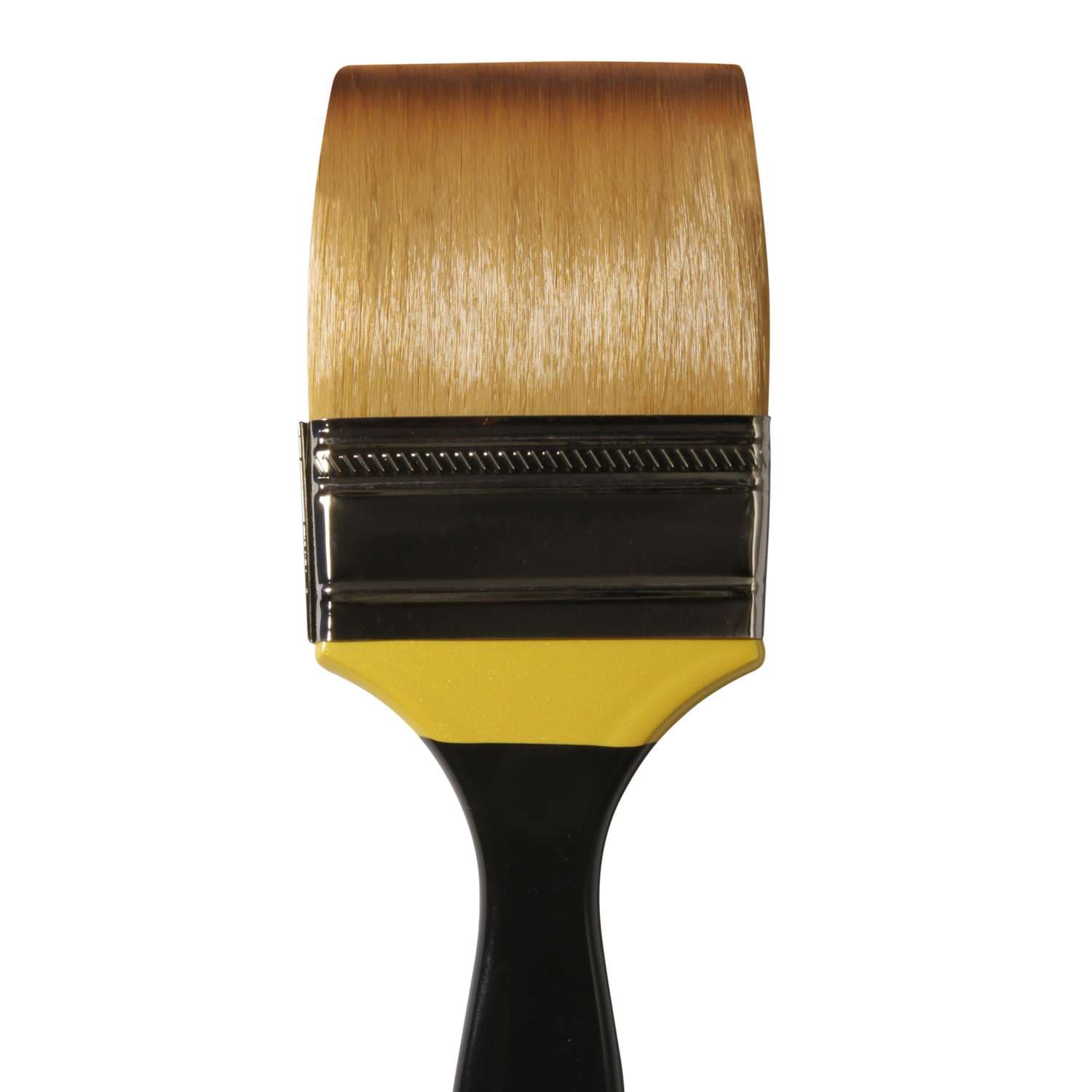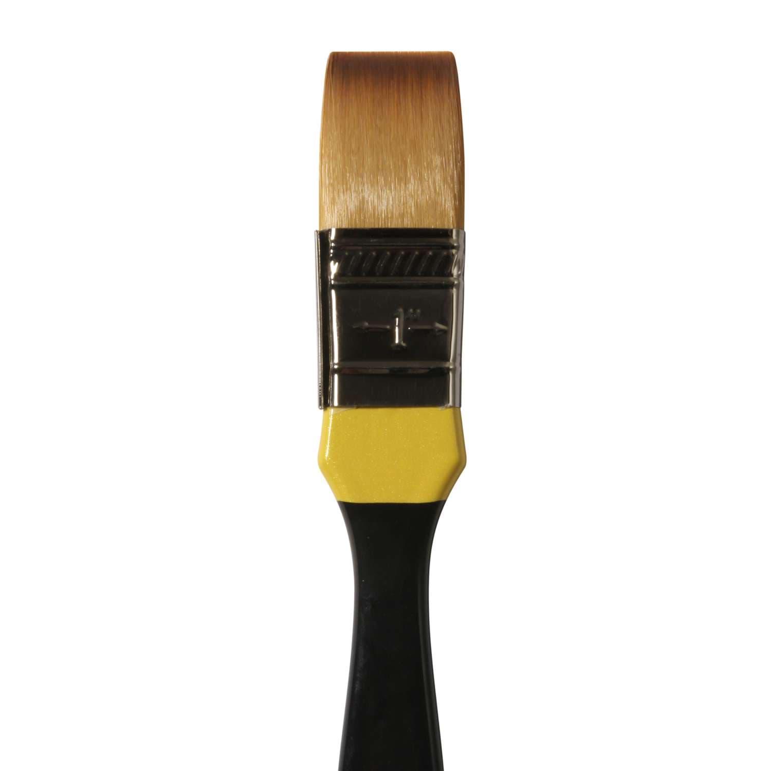Une gamme de pinceaux et brosses étendue à manches longs et courts, fabriquée dans l’usine artisanale de Daler-Rowney. Manche noir nacré avec une bande couleur jaune pour indiquer la technique Acrylique, virole en métal argenté foncé sans soudure.