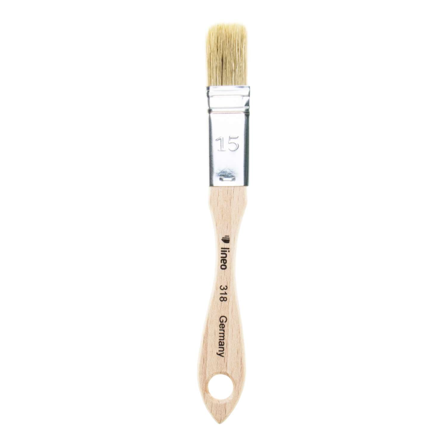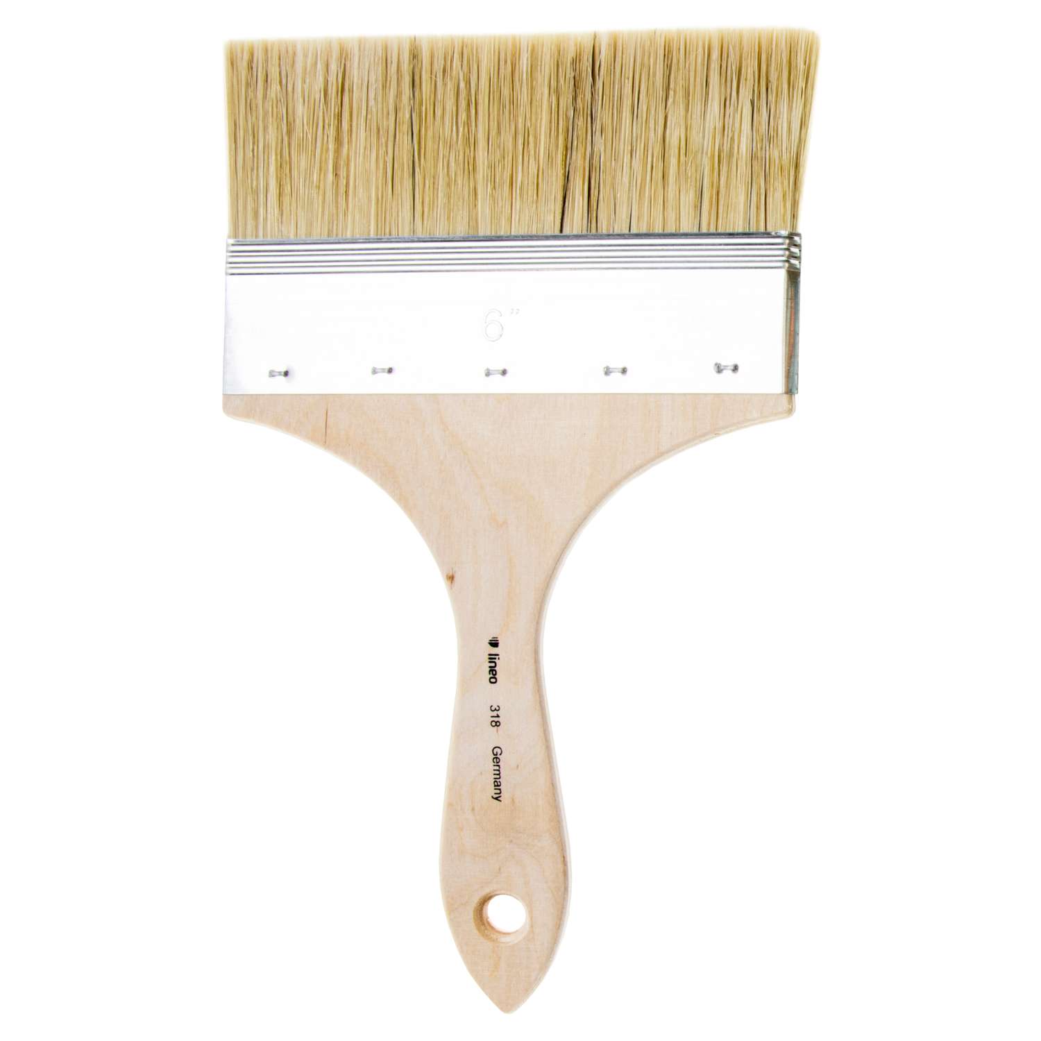 Les pinceaux plats larges de la série lineo 318 sont fabriqués avec des poils Chungking blanchis à blanc, idéaux pour un travail rapide et uniforme sur des surfaces moyennes à grandes. Les poils Chungking sont des poils de porc robustes avec fanons, reconnus pour leur grande solidité, leur élasticité et leur capacité d’absorption de la couleur, offrant un tracé régulier et homogène.