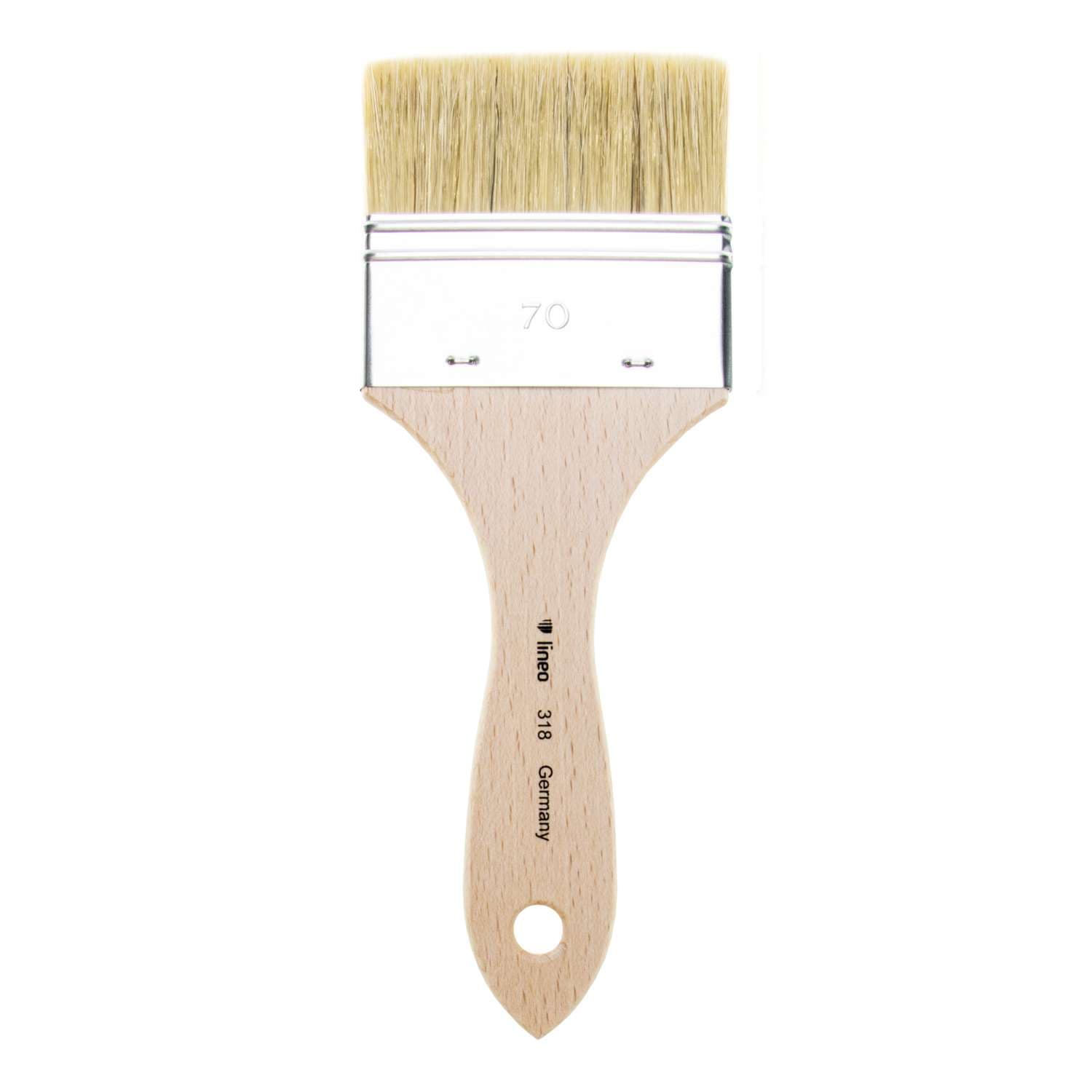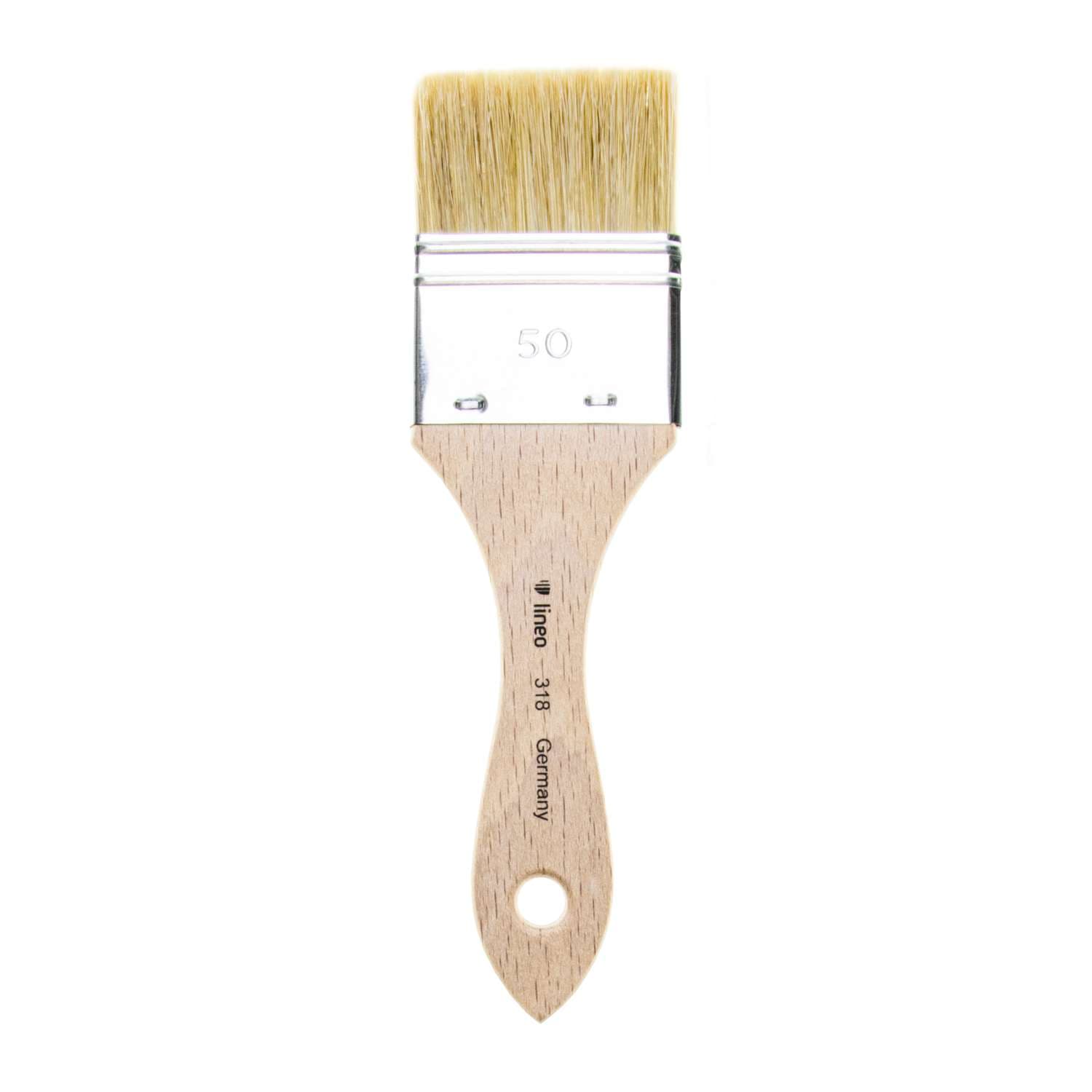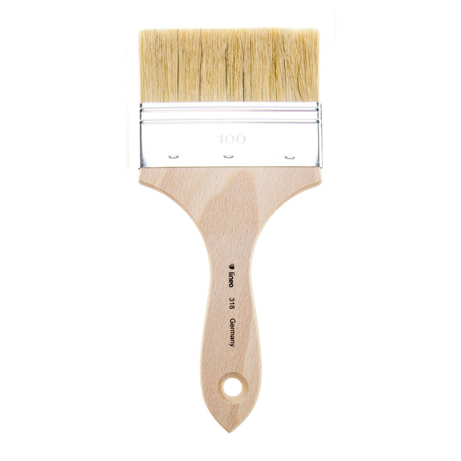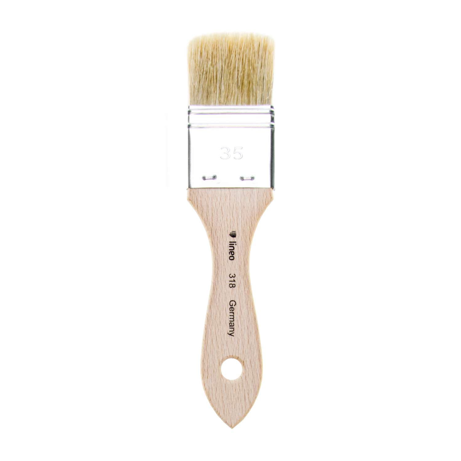 Pinceau plat large lineo Série 318 : poils Chungking blanchis, solides et élastiques, pour acrylique, huile, tempera et gouache. Fabrication artisanale allemande.