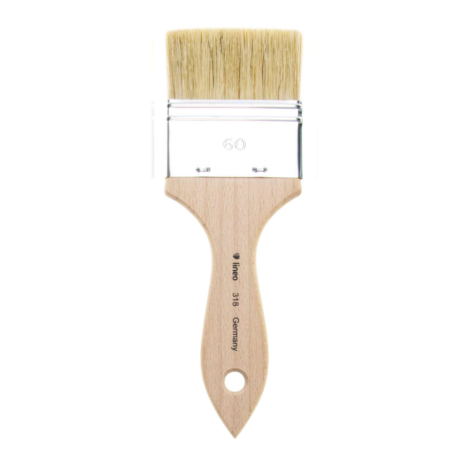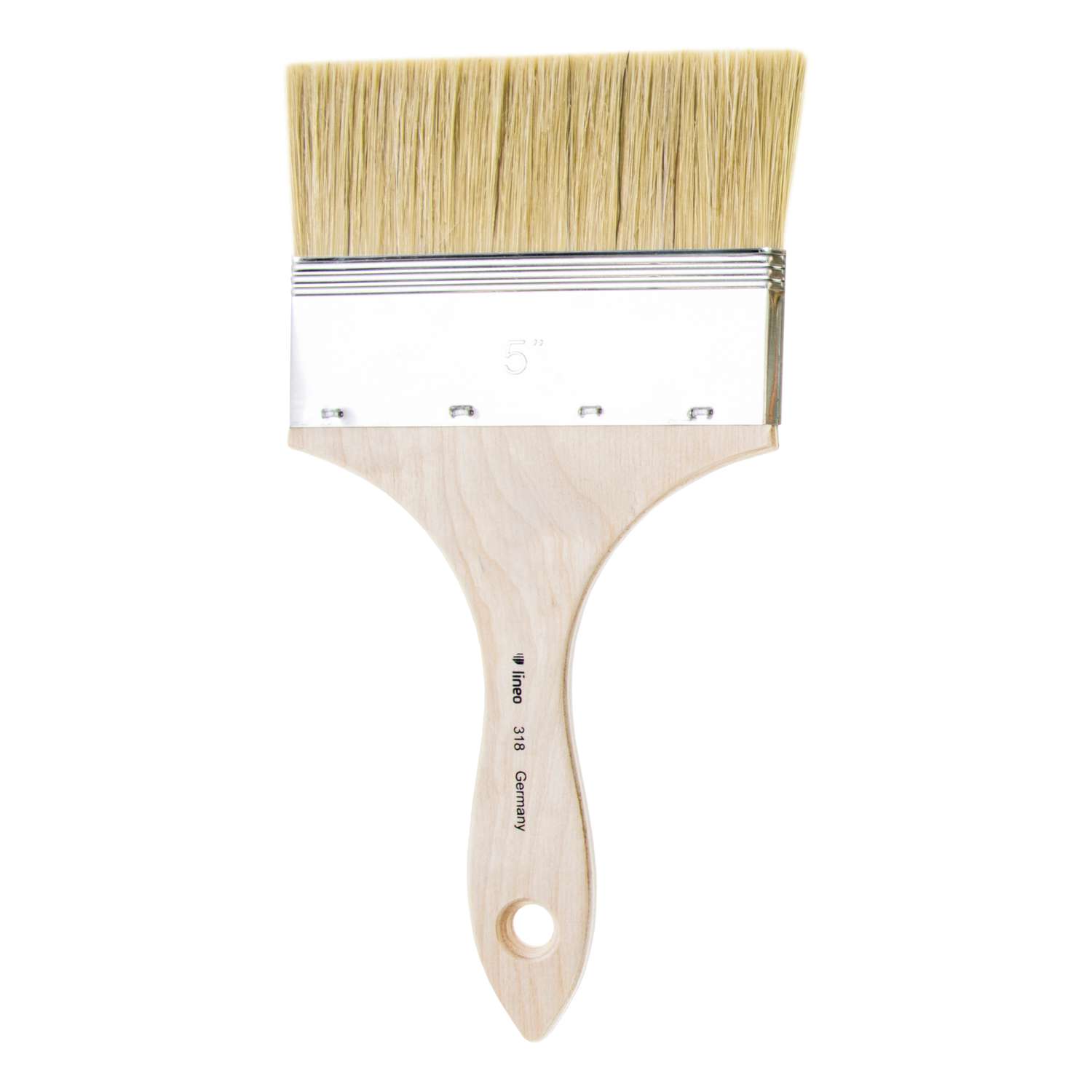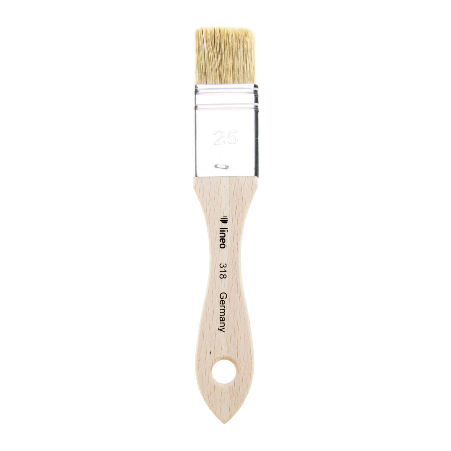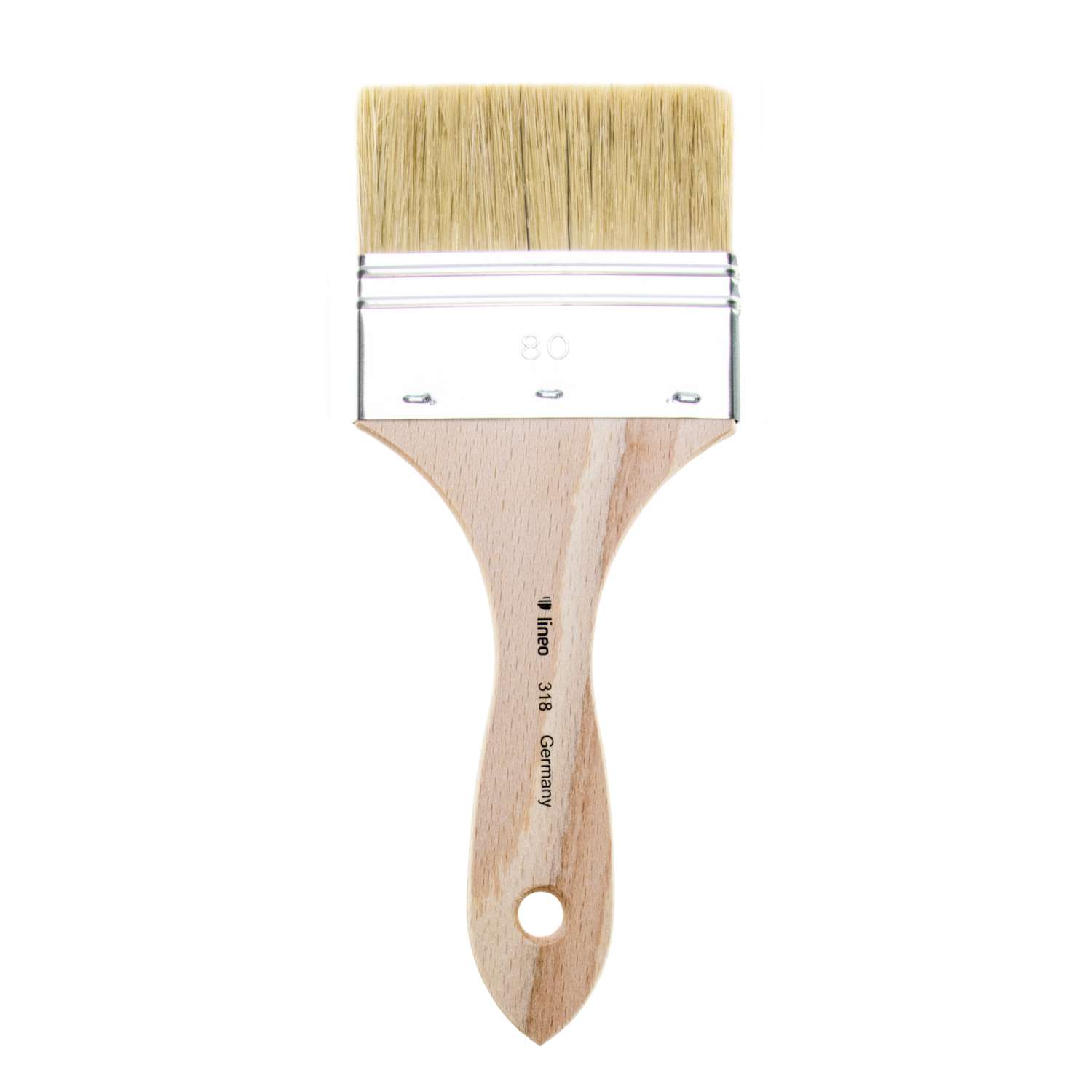Pinceau plat large lineo Série 318 : poils Chungking blanchis, solides et élastiques, pour acrylique, huile, tempera et gouache. Fabrication artisanale allemande.