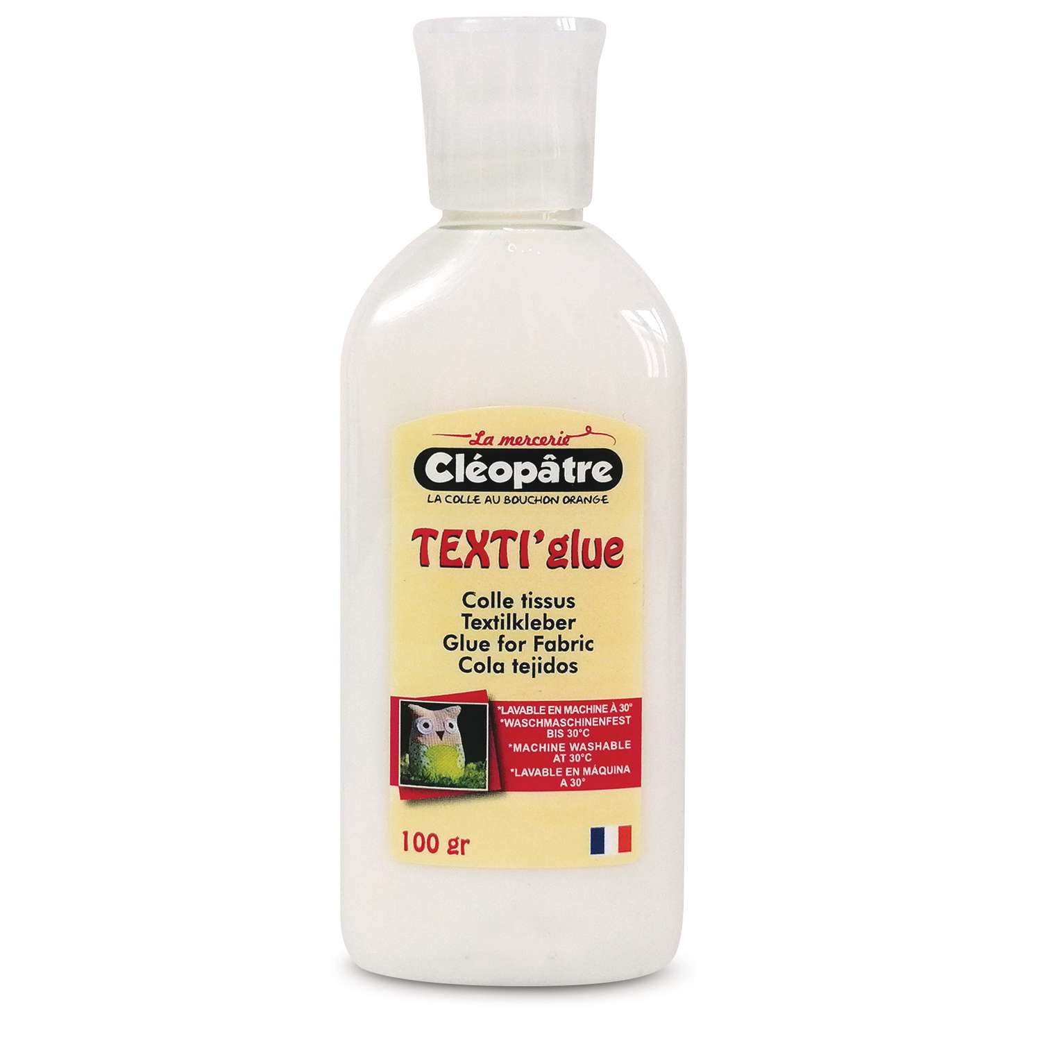 Texti'Glue est une colle pour tissus, forte et polyvalente. Elle colle sans problème le tissu, le feutre et les strass sur les supports les plus divers comme le carton et le bois.